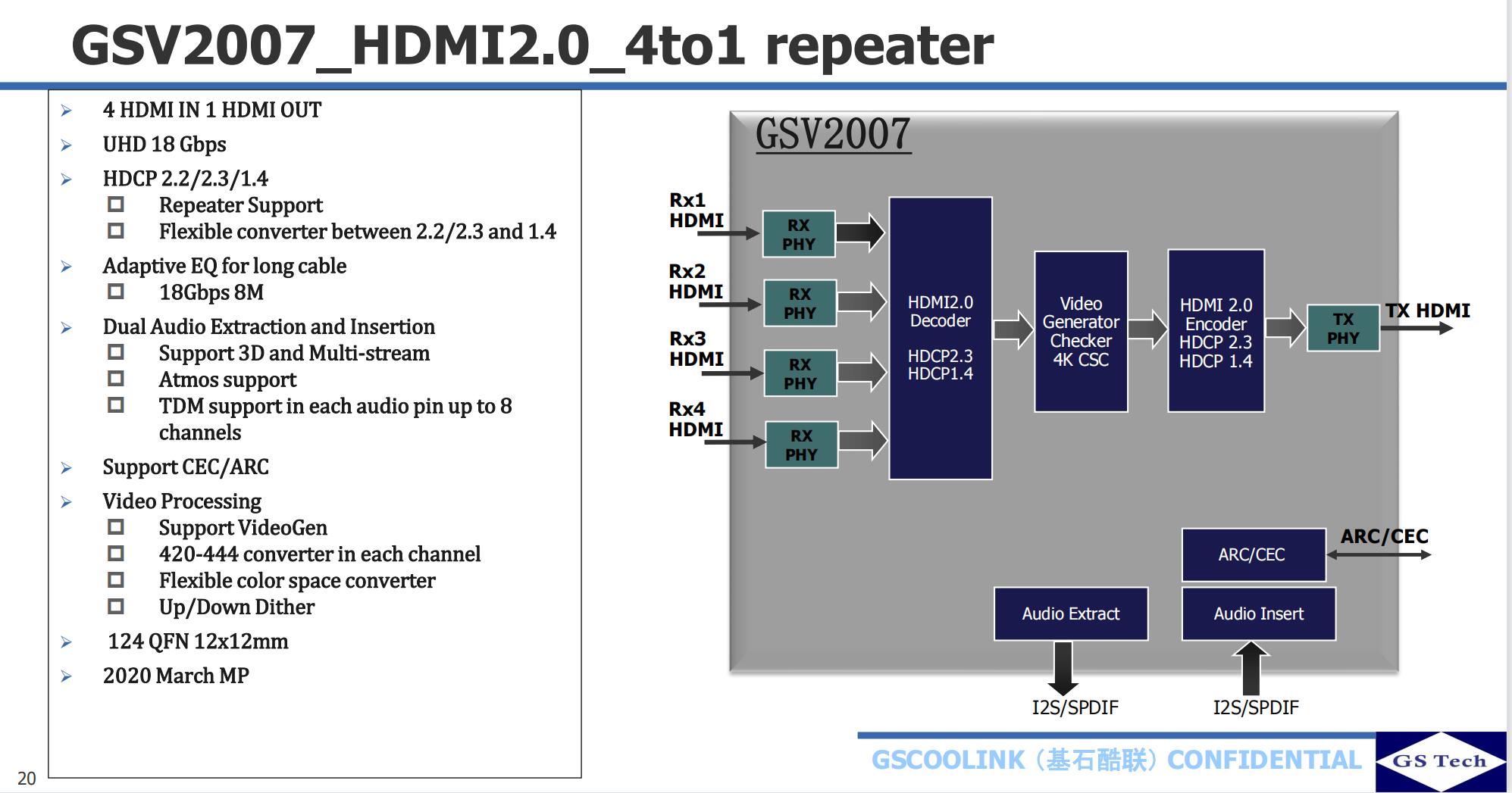 GSV2007_4 In to 1 Out HDMI2.0切换器及矩阵芯片
