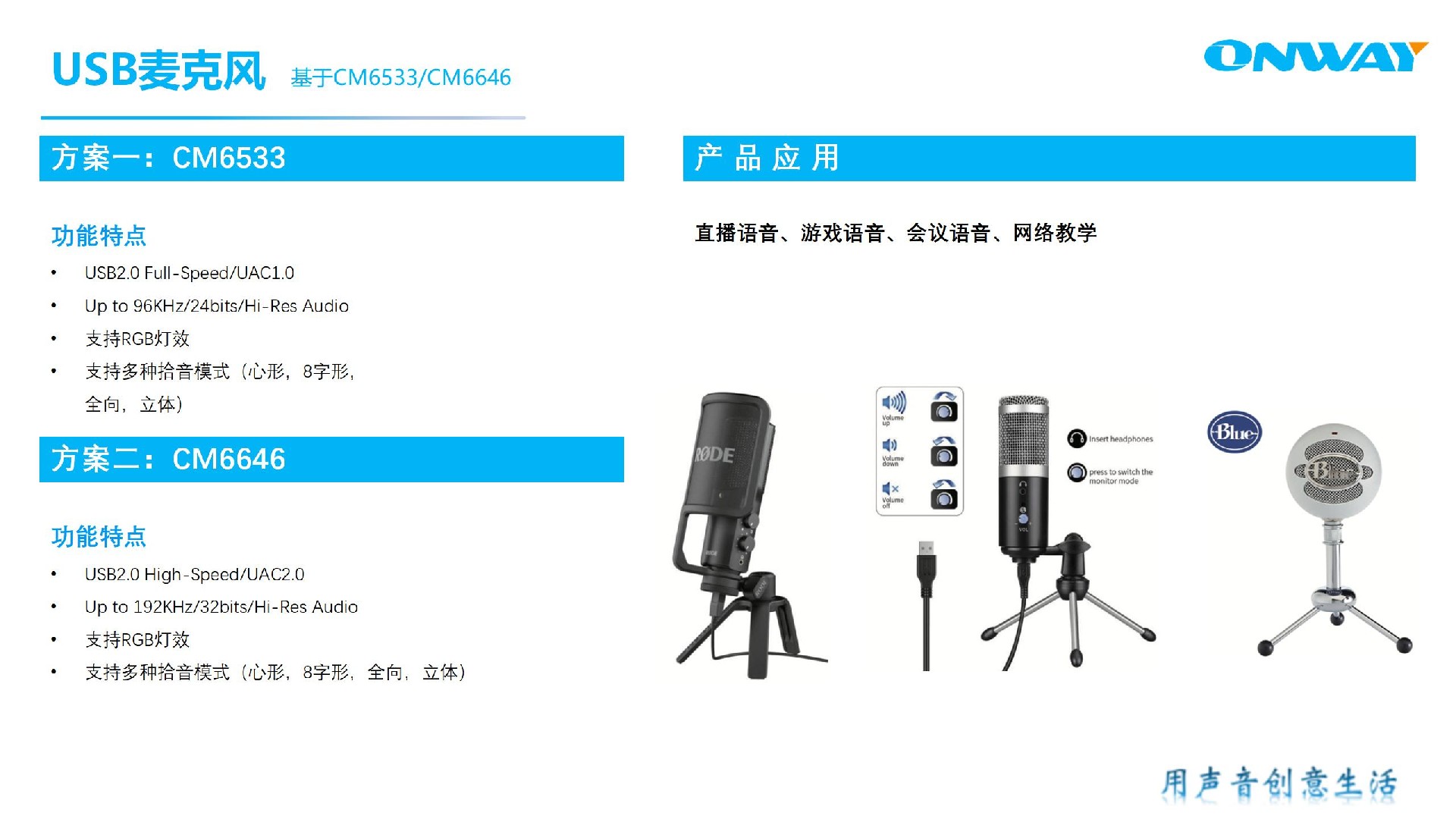 骅讯电子的CM6327A系列,提供完整USB麦克风单芯片华体会网页版登录入口。高整合单芯片可简化周边料件成本、降低开发时程,及实现高品质录音功能。适用于各种游戏主机或是PC平台时,可呈现稳定的高品质音效,满足中高阶与客制化产品应用。搭配骅讯电子研发的PC卡拉OK软件引擎,更可实现回音加强系统、人声消除、歌曲升降KEY调整、魔音效果技术等。