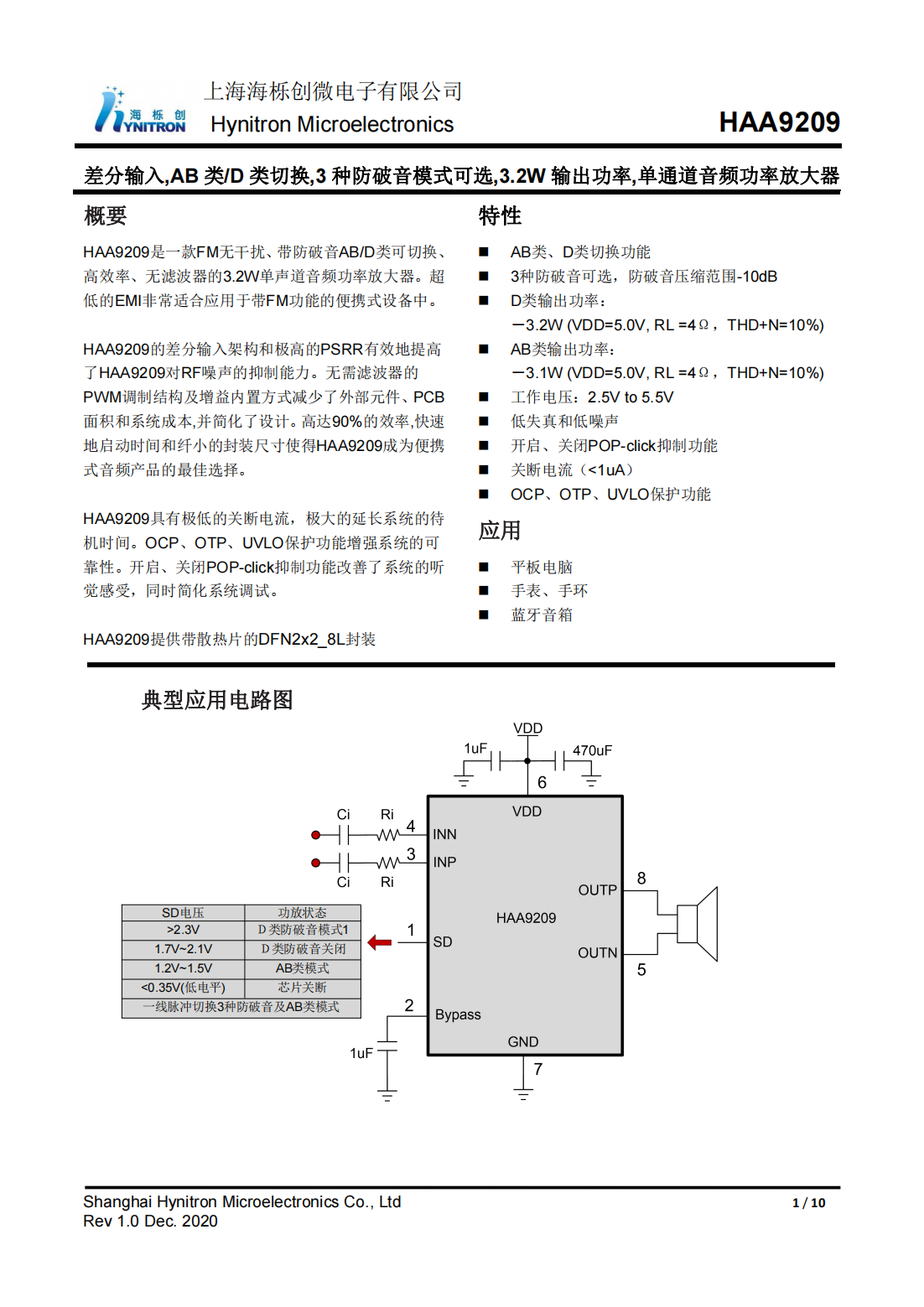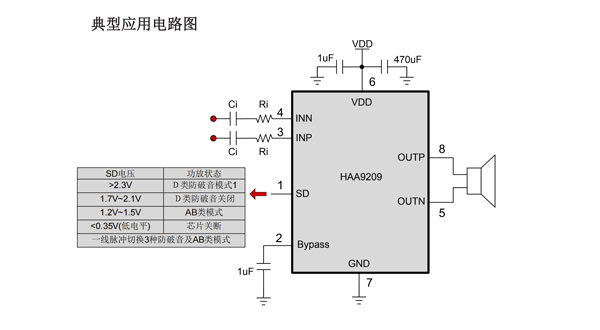 HAA9209_3.2W输出功率,单通道音频功率放大器