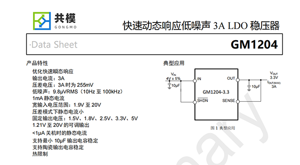 GM1204 Pin to pin替代LT1764_低噪声3A LDO 稳压器