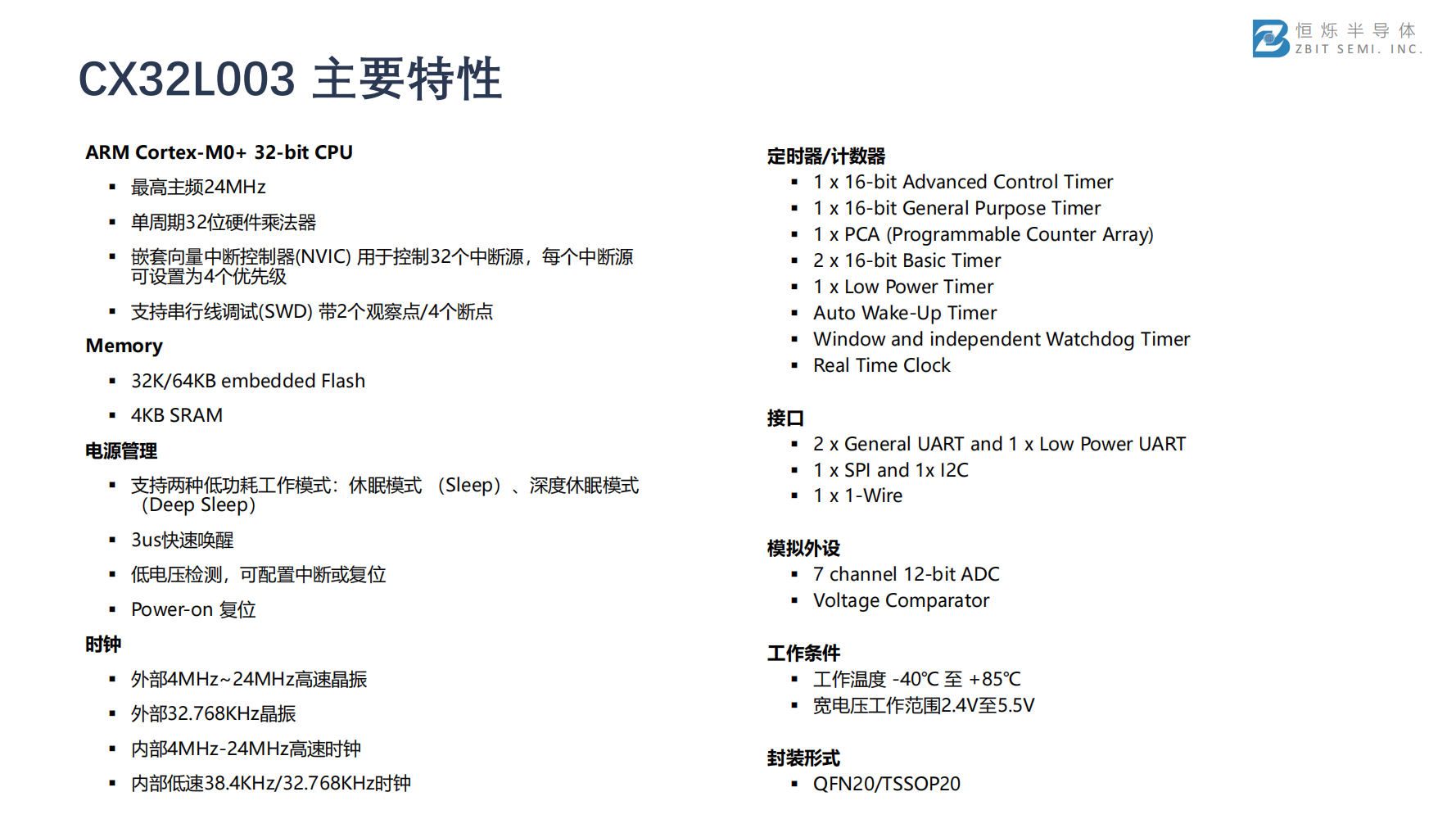 CX32L003主要特性
