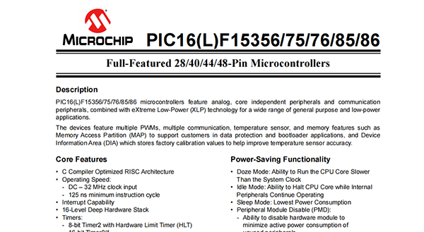 1.8V to 3.6V (PIC16LF15356/75/76/85/86)