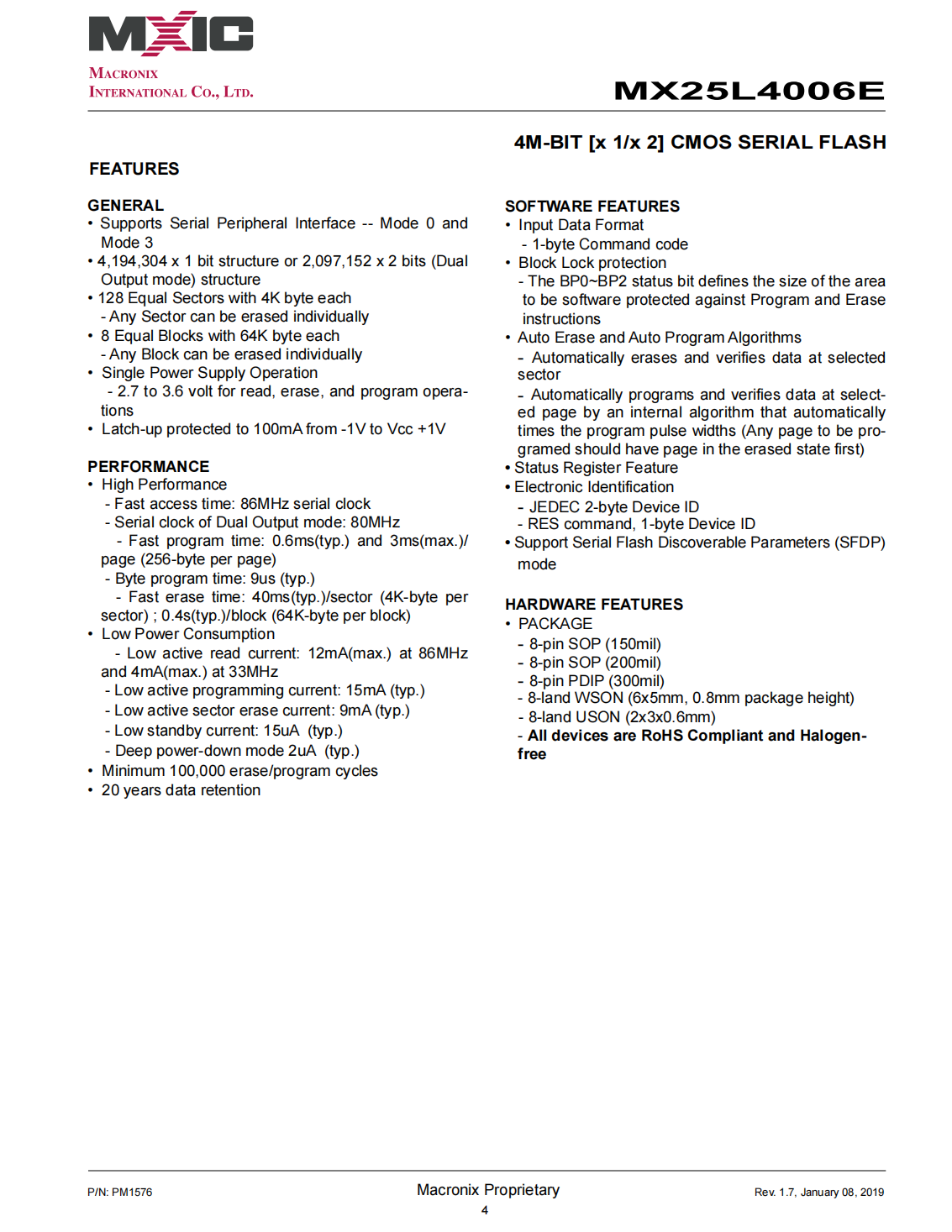 MX25L4006EM1I-12G_3V, 4M CMOS SERIAL FLASH MEMORY
