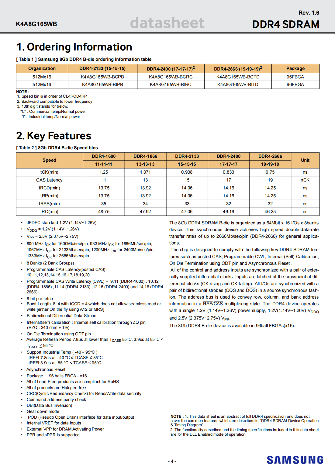 K4A8G165WB-BCTD_8Gb B-die DDR4 SDRAM