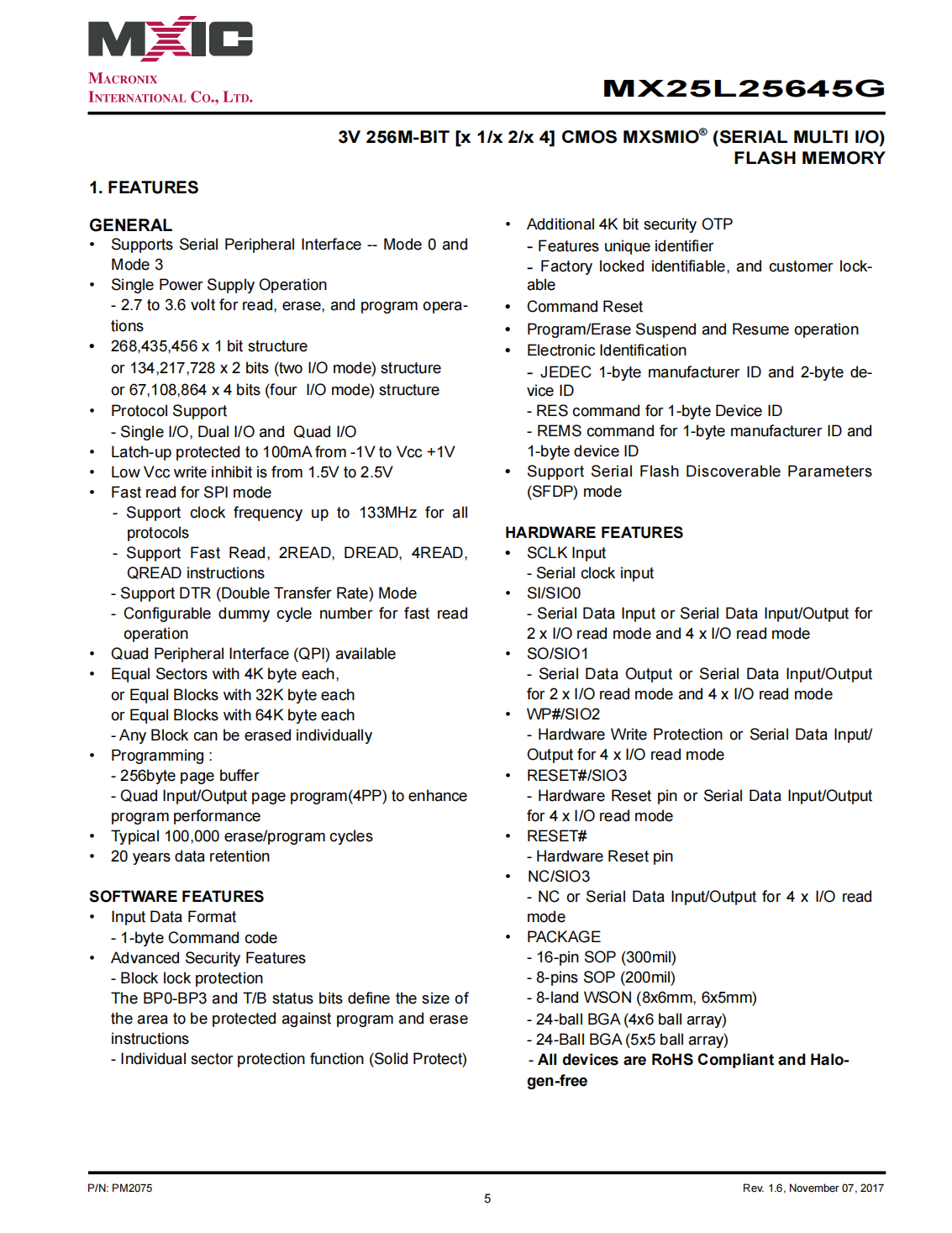 3V, 256M-BIT [x 1/x 2/x 4] CMOS MXSMIO® (SERIAL MULTI I/O) FLASH MEMORY