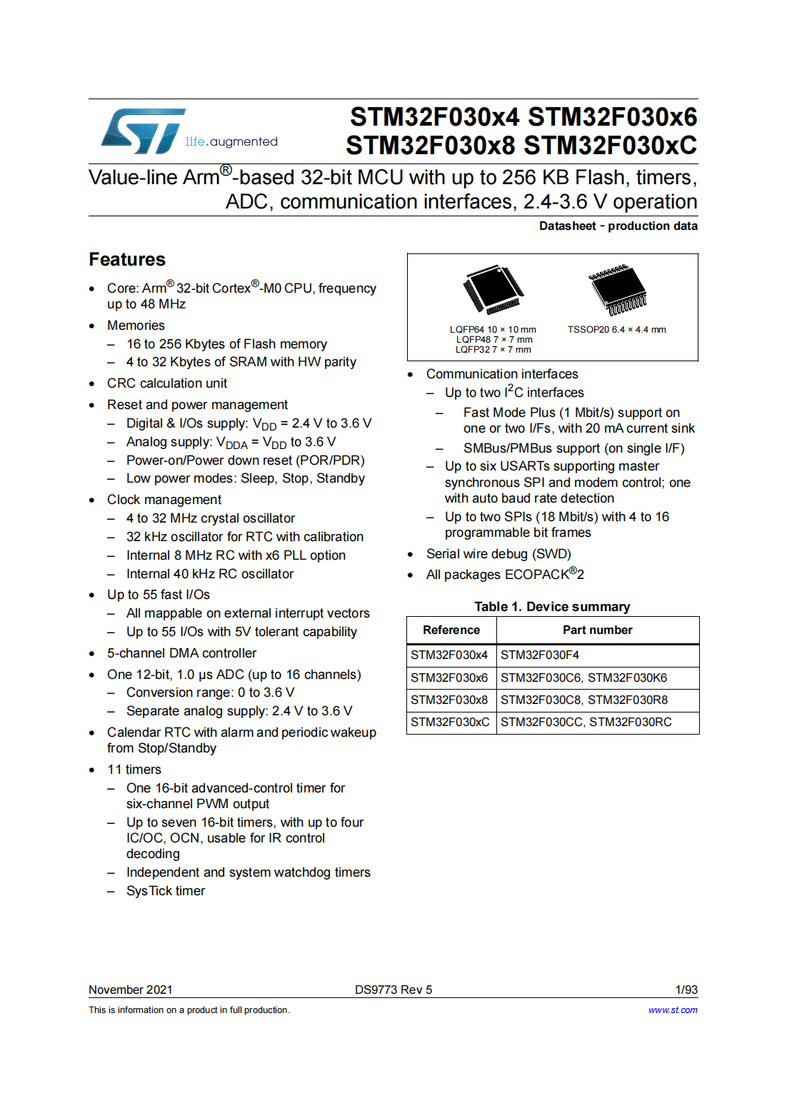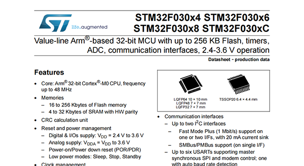 •Core:Arm®32-bit Cortex®-M0 CPU,frequency up to 48 MHz