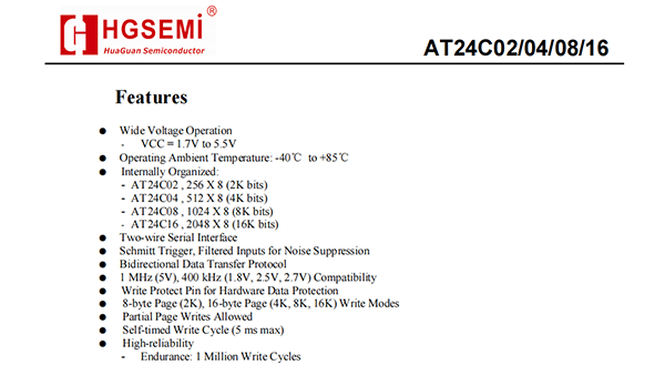 ●1 MHz(5V),400 kHz(1.8V,2.5V,2.7V)Compatibility