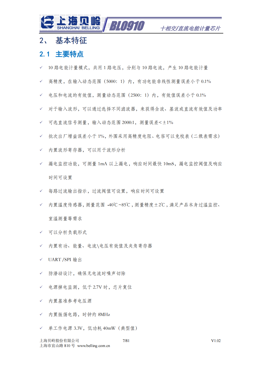 BL0910能够测量电流、电压有效值、有功功率、有功电能量等参数,可输出快速电流有效值(用于漏电监控、过流保护等故障检测),以及温度检测,波形输出等功能,通过UART或高速SPI接口输出数据,能够充分满足物联网大数据采集的需要。