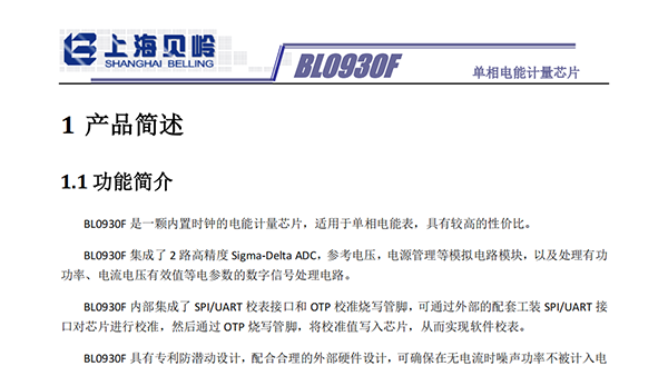 BL0930F是一颗内置时钟的电能计量芯片,适用于单相电能表,具有较高的性价比。