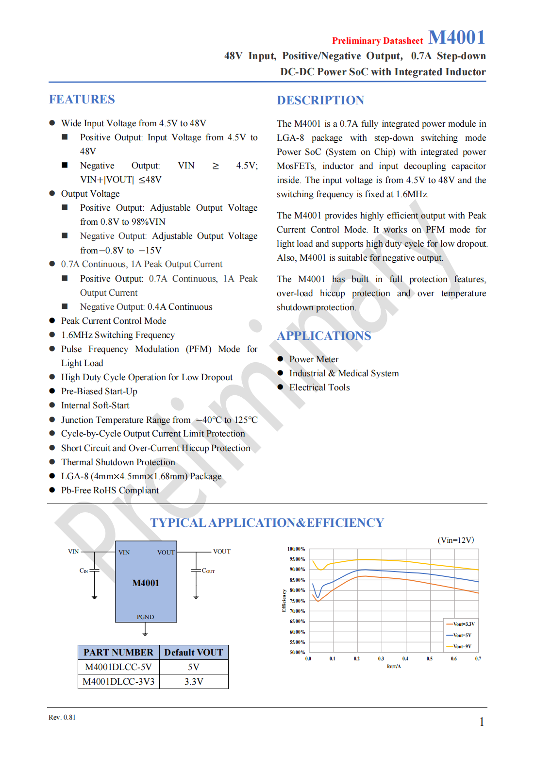 正压输出:可调输出电压范围:0.8V~98%VIN