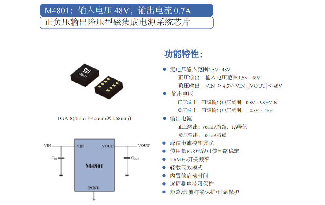 负压输出:VIN≥4.5V;VIN+|VOUT|≤48V