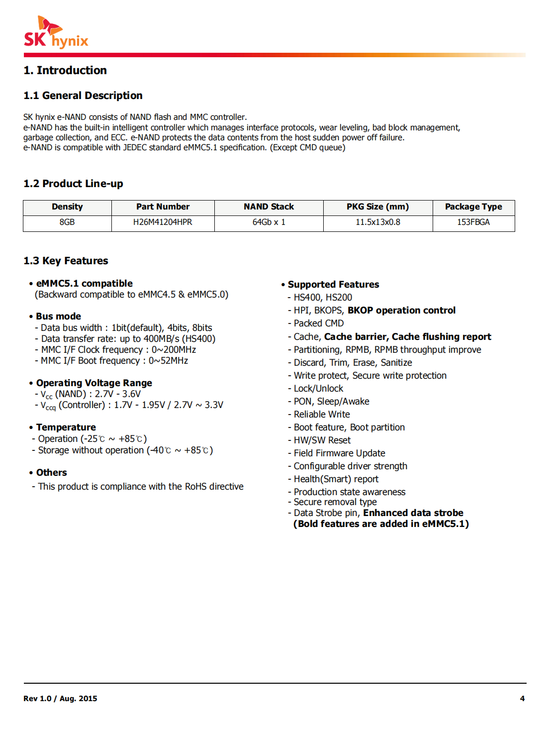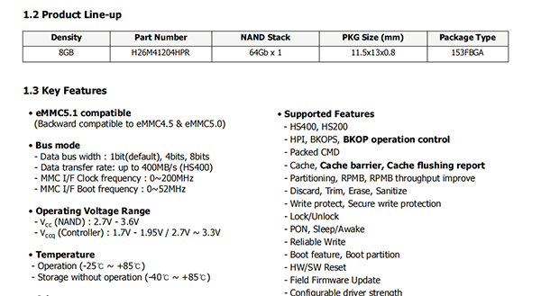 (Backward compatible to eMMC4.5&eMMC5.0)