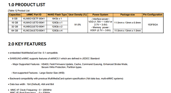 SAMSUNG eMMC is an embedded MMC solution designed in a BGA package form.