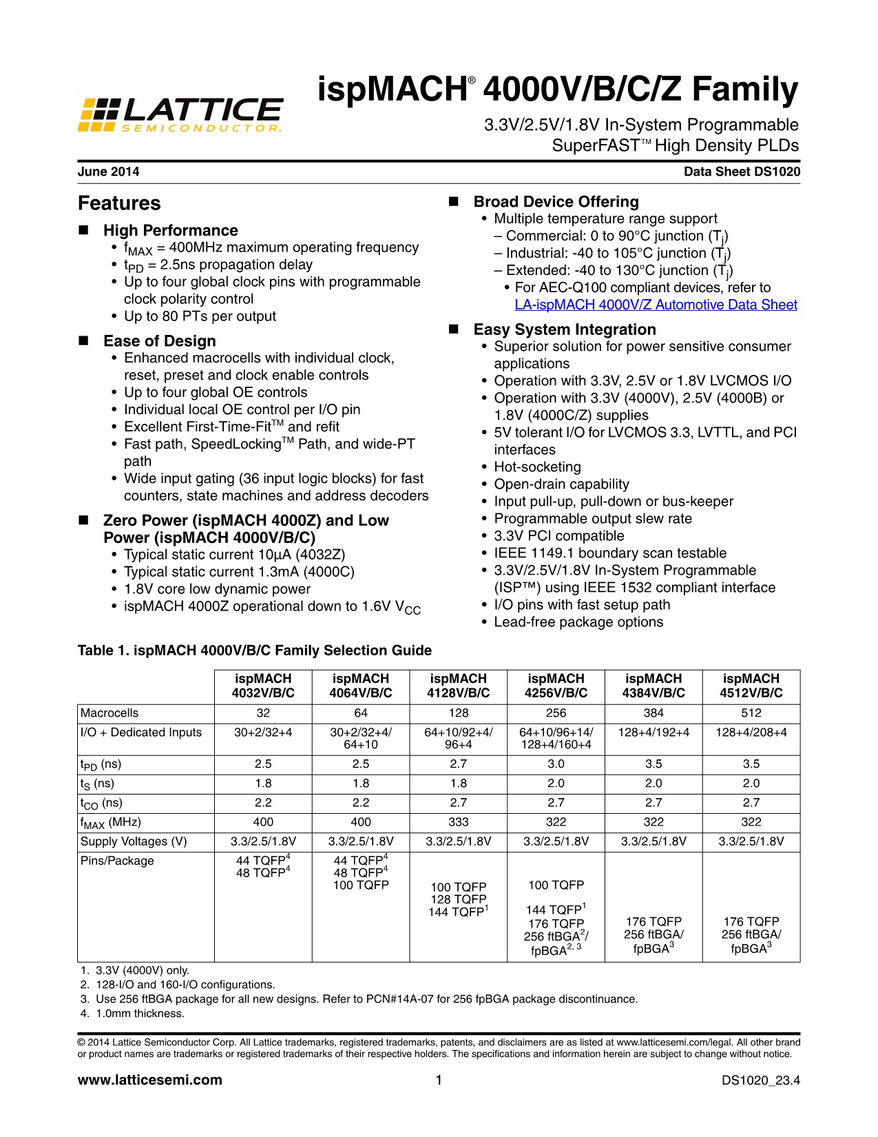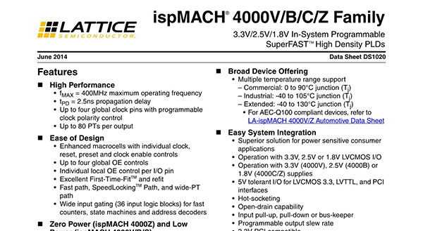 The high performance ispMACH 4000 family from Lattice offers a SuperFAST CPLD solution. The family is a blend of Lattice’s two most popular architectures: the ispLSI® 2000 and ispMACH 4A