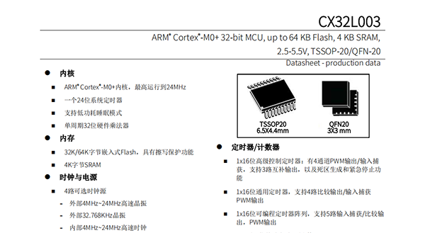 ◼ARM®Cortex®-M0+内核,最高运行到24MHz