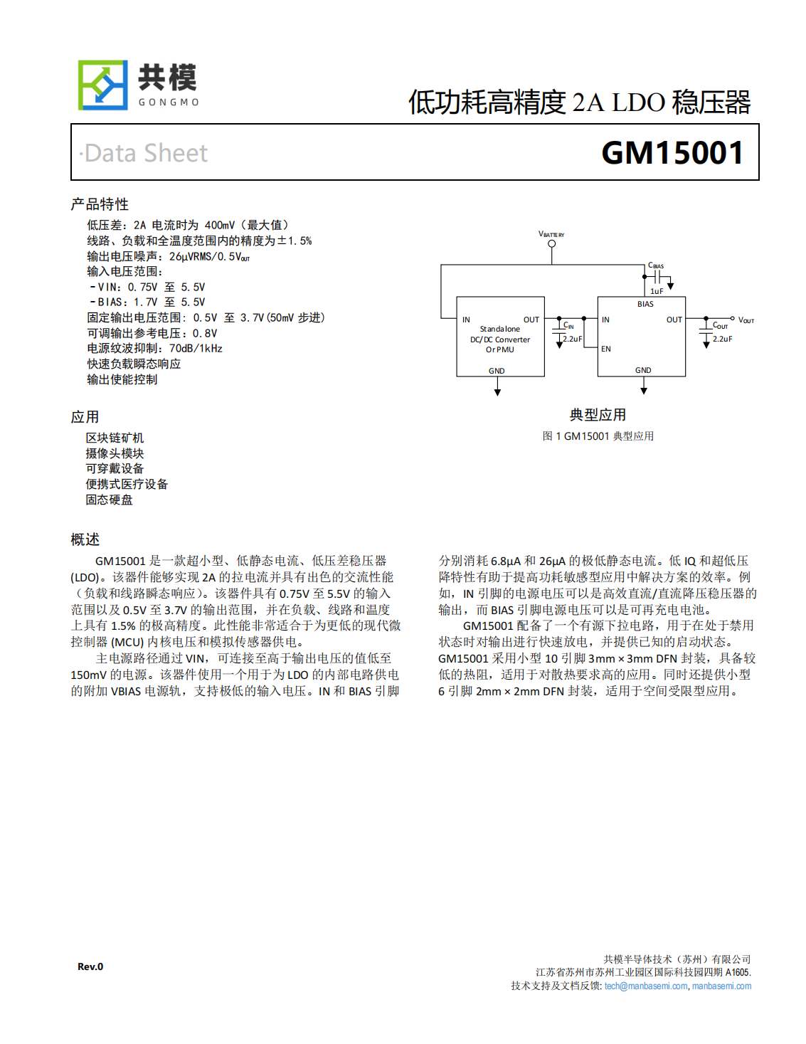 GM15001采用小型10引脚3mm×3mm DFN封装,具备较低的热阻,适用于对散热要求高的应用。同时还提供小型6引脚2mm×2mm DFN封装,适用于空间受限型应用。